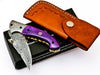 Premium Handmade Damascus Steel Folding Pocket Knife - with Leather Sheath - Classic Artistry