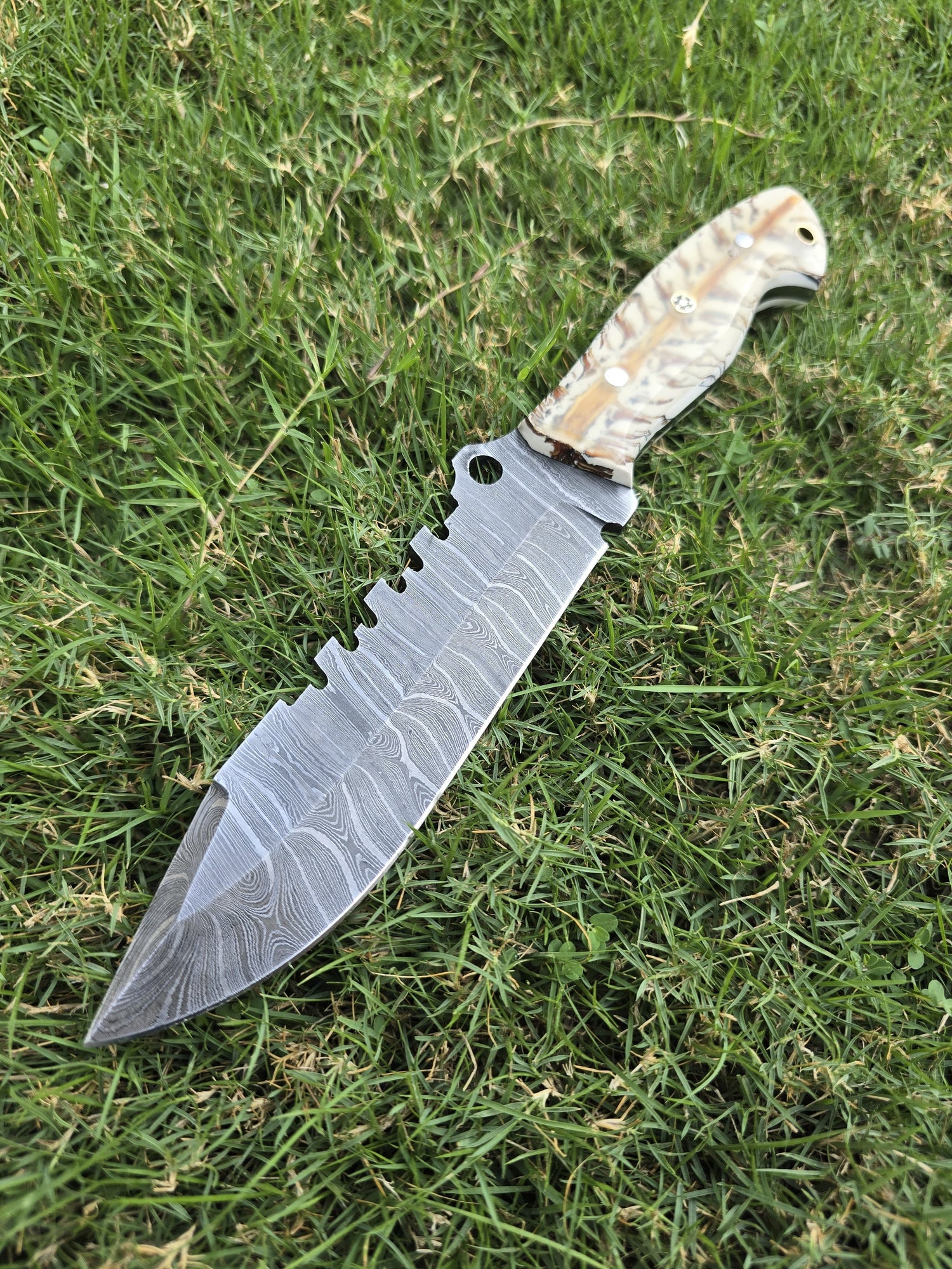 Nooraki - 11″ Damascus Hunting Knife with Sheath | Hand Made Camping Knife - Full Tang Knife - Ideal for Survival,Chopping, Camping, Outdoor Gift for Men |Tactical Knife Pinecone Resin Handle
